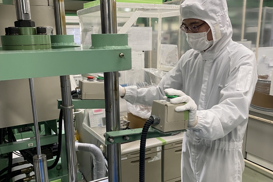 フッ素樹脂素材は、半導体製造装置や自動車部品等に使用される材料になるため、異物の混入に細心の注意を払わなければなりませんが、皆さんが手にしているスマートフォン等の製造の一角を担っていると思うと、非常にやりがいを感じます。