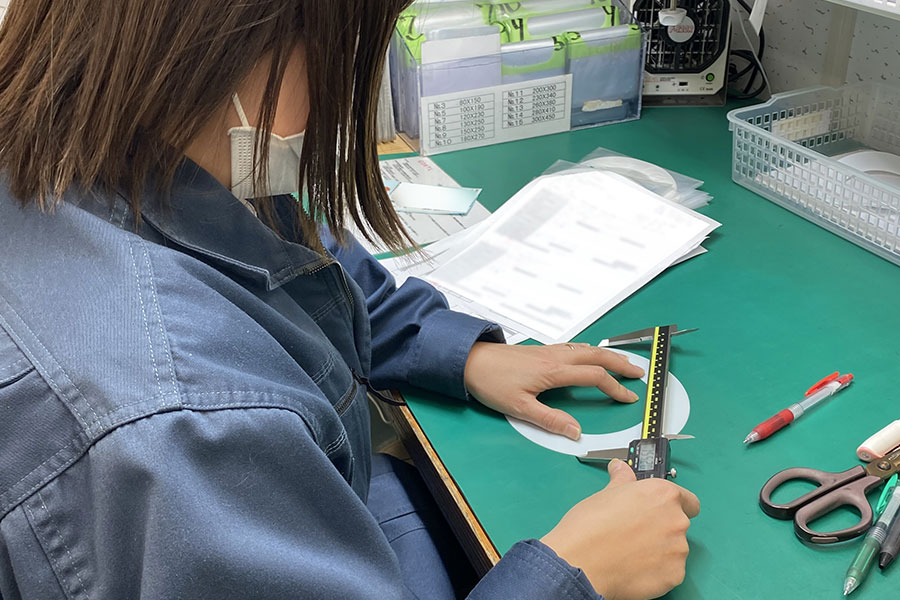 製品の品質検査を行っていただきます。具体的には、ノギスや巻尺を使用した寸法検査や目視検査(キズ・汚れ・異物混入の有無等)及び製品の袋詰め作業になります。